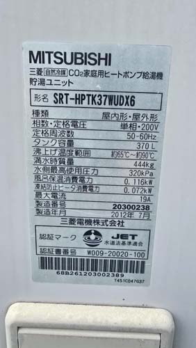 東大阪市長堂 三菱電機自然冷媒CO2家庭用ヒートポンプ給湯機 貯湯ユニットSRT-HPTK37WUDX6→コロナ自然冷媒CO2家庭用ヒートポンプ給湯機 ヒートポンプユニットCHP-DZ601K、貯湯ユニットCTU-46AZ1K エコキュート交換工事