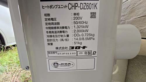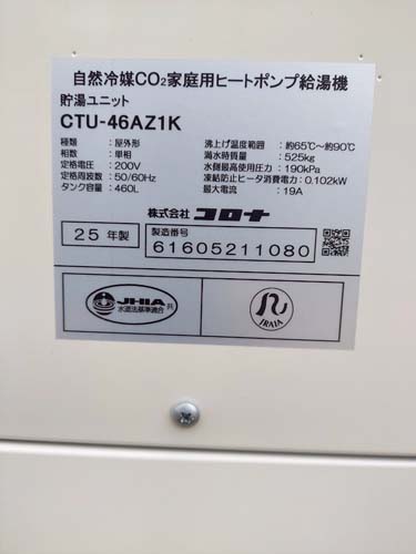 東大阪市長堂 コロナ自然冷媒CO2家庭用ヒートポンプ給湯機 ヒートポンプユニットCHP-DZ601K、貯湯ユニットCTU-46AZ1K エコキュート交換工事|大阪エコキュート取り付け工事センター